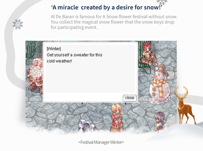 /navi aldebaran 174/163The Festival Manager will recommend to make a snow flower bouquet, which can be made by collecting 10 magical snow flowers.