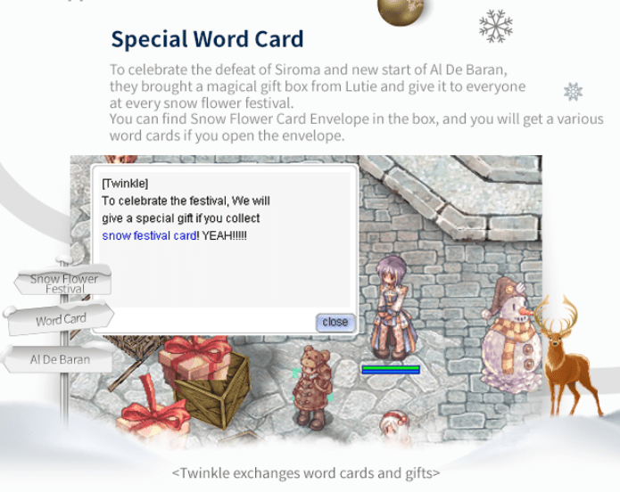 /navi aldebaran 217/211Twinkle will ask you to retrieve snow flower cards based on the lucky word that day.