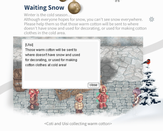 She will give you a quest where you have to hunt 10 Snow Boy and collect 10 magical snow flowers.