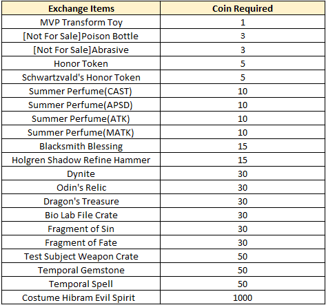 New to this event is an exclusive MVP Transform Toy. Upon using the item, player will be turned into a random MVP monster for 10 minutes. Item can be purchased at NPC Soul Servant with 1 Anniversary MVP Token.