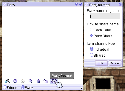 1. First, create a party by using /organize <party name> or by pressing Alt + Z and clicking the “Party Formed” button.