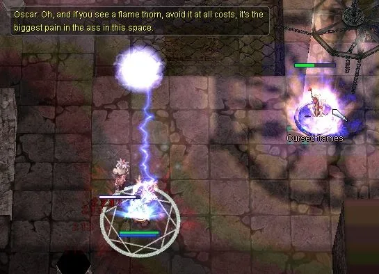 These tiles will have a gap between each one where players can safely pass through. Standing on a flame tile or getting hit by an approaching tile will deal damage to the players in quick intervals (can be blocked with barrier skills like Kyrie Eleison). Oscar will sometimes appear in the central area of the room to temporarily hold the current flame tiles in place. Keep in mind that the player doing this pause mechanic will not be allowed to move or take damage for a few seconds until the casting is finished. Otherwise, the attempt will be cancelled and they will need to talk to the NPC once again.