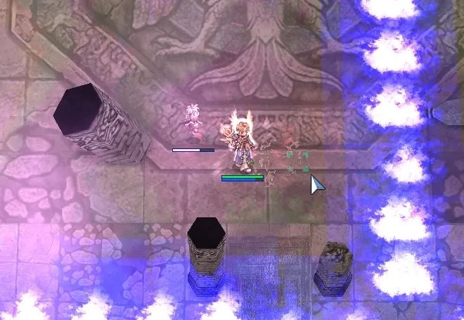 Included in EDDA: Fall of Glast Heim Instance is the room-wide floor mechanic, wherein rows of purple flaming tiles will move vertically or horizontally throughout the entire room, making it challenging for players to stay in one position.