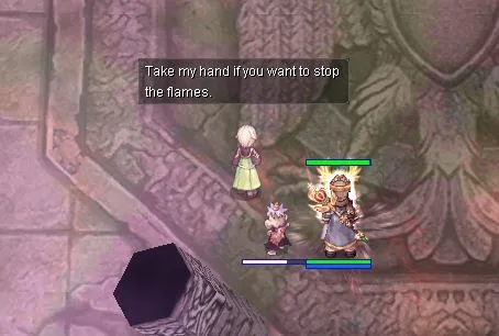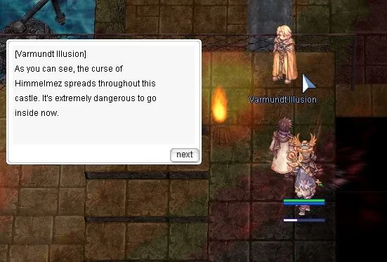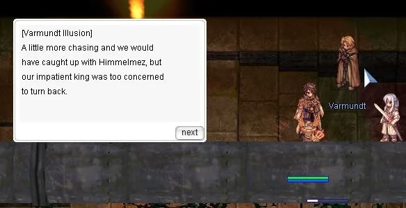 2. Upon entering, talk to Varmundt Illusion. He talks about Himmelmez’s curse that’s spreading throughout the castle, and advises King Schmidt to turn back, but the king refuses and wishes to explore further.