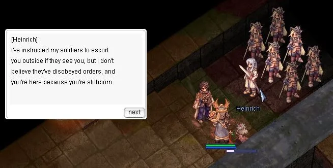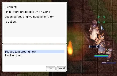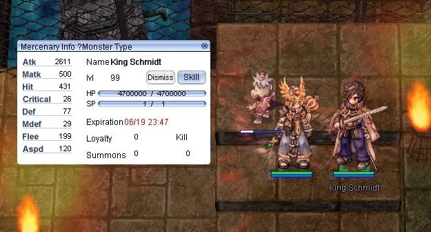 3. After the dialogue, you will be accompanied by King Schmidt (Mercenary). You may set him to passive mode or have him kill the monsters that spawn later on (helpful to players with low DPS). It is important to keep him alive throughout the Pre-Quest. If the mercenary dies the first time, you will not be able to proceed through a gate in the middle of the map, and will need to return to Varmundt Illusion to acquire him again. If the mercenary dies a second time though, the gate will make you proceed regardless.