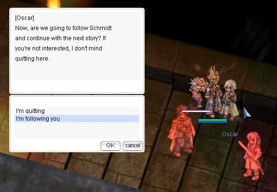 12. After the exchange, Oscar appears. Talk to him, and he will ask you if you wish to proceed or leave. Choosing to continue will warp you to the next area of the instance.