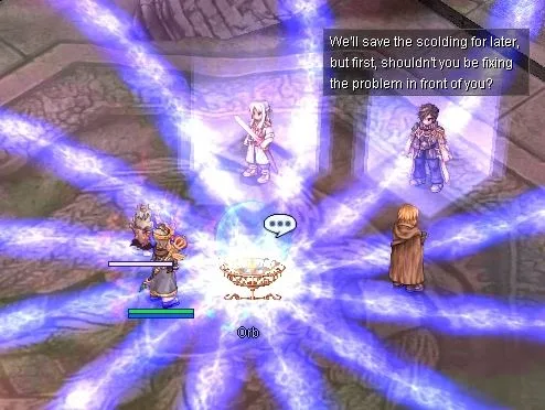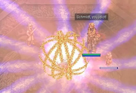 13. After warping into the next area, watch the cutscene where Varmundt tries to subdue the orb’s powers. King Schmidt and Heinrich appear soon after and they have an exchange of dialogue with Varmundt.