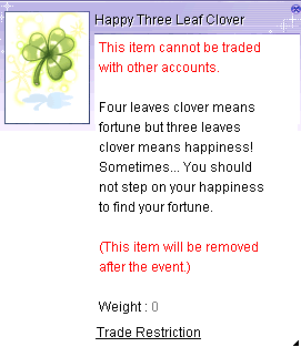 needs your help in hunting 3 Clover Lunatics and obtain 3 Happy Three Leaf Clovers.
