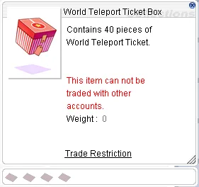 - World Teleport Ticket Box (allows easy access to fields and dungeons without having to traverse long walks or teleports from town; done via World Map or Navigation System, and must be used outside a building)