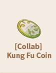 ![]() | [Collab] Kung Fu Coin A commemorative coin given to you as a reward for your training. You can trade it with various items at [Zhen] (Item will be removed after the event ends.) Weight: 1 |
