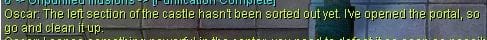 2. After the conversation with Oscar ends, the party will be split randomly between the left and right wings of the map, which are then filled with 50 monsters on each side. At least 47 out of the 50 monsters need to be killed in order to unlock the portal to leave the area.