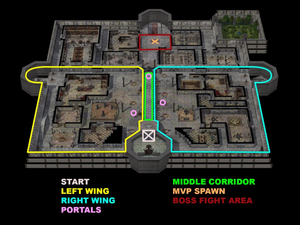 2b. If one side’s group has less DPS compared to the other (ex: mostly full supports or tanks), it is advised to have them stay put while the other group clears their own area first, so they can help with clearing theirs.